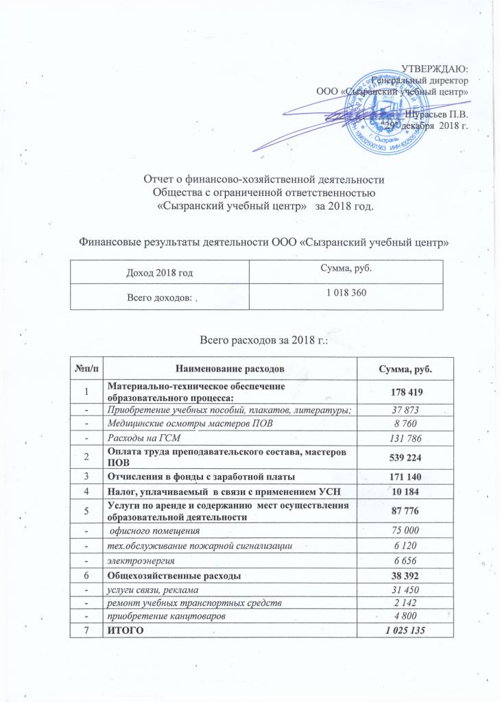 Отчет о финансово-хозяйственной деятельности за 2018 г.